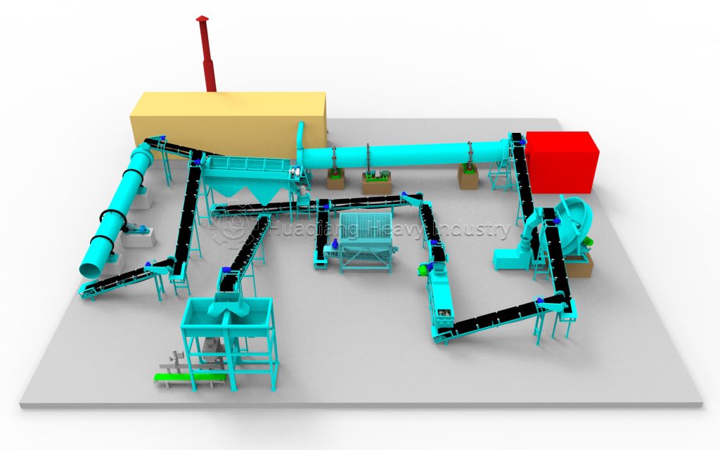 - Disc Granulator– The “heart” of the production line, responsible for transforming raw materials into uniform granules